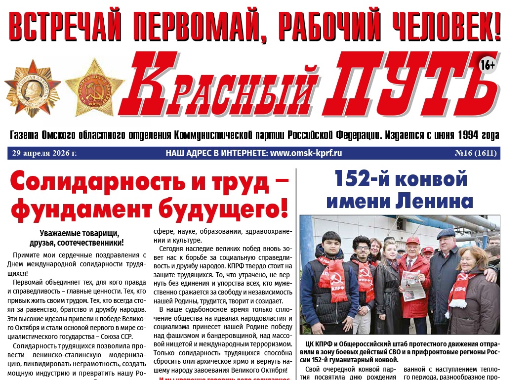 Развал Советского Союза и возвращение России на рельсы капитализма фактически отняли у граждан важнейшие права и социальные гарантии. Да еще и в 1992-м день переименовали в Праздник весны и труда. Первомай превратился в попытку денежных мешков и «эффективных менеджеров» притереться к трудящимся под лозунгом о «единении с народом». И вот уже 34 года власти нам стараются доказать, что путь, по которому идет страна – это путь в прекрасное будущее. Но люди не согласны: и в столице, и в больших городах – в том числе и в Омске, и селах ежегодно Первомай проходил под красными флагами, с шествием. В отличие от «добровольно-принудительной», едроссовско-«профсоюзной» первомайской акции, наша демонстрация по улице Ленина в Омске шла организованно под бодрые марши оркестра, люди разных поколений, комсомольцы и пионеры с гордостью несли транспаранты: «Нет политике роста цен и тарифов ЖКХ!», «Достойная жизнь – право народа!», «Власть и собственность – народу!». «Трудящиеся, объединяйтесь в борьбе за свои права!», «Программа КПРФ – Программа народа!».
