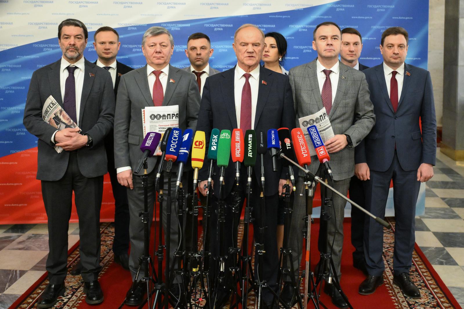 Я хочу вам сегодня представить наш специальный выпуск газеты «Правда». Он выйдет семимиллионным тиражом в ближайшее время. И наша главная идея – чтобы побеждать, России нужна справедливость, социализм и дружная работа. Но, по-прежнему продолжается произвол в Липецке. По-прежнему преследуют многодетных матерей на Алтае. По-прежнему не слышат голос малого и среднего бизнеса, задушенного высокими налоговыми ставками и тарифами на ЖКХ.