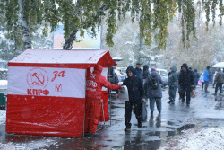 Акции протеста Омских коммунистов не прекращаются. И сегодня очередной пикет у Кировской Администрации организовал второй секретарь Омского обкома КПРФ Иван Федин. Идущим на Кировский рынок, на остановку он предлагает участвовать в Народном референдуме. И люди, спешащие за покупками, останавливаются и охотно отвечают на вопросы. Несмотря на то, что по прогнозам погоды снег – целый день - акция протеста продолжается. И в следующие выходные мы будем выходить на улицу, не откажемся от общения с народом. Завтра, например, у нас выезд в Кормиловку, мы проводим акцию "Народный референдум" там – говорит второй секретарь Иван Федин.