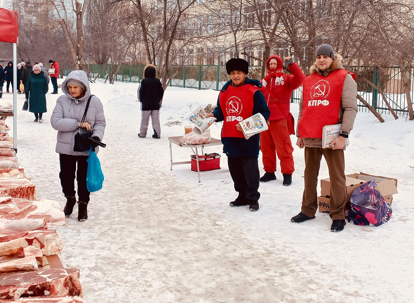 Не дали власти провести традиционный пикет в поддержку Народного референдума КПРФ и около «Социального» рынка в 12-м микрорайоне Кировского округа Омска. Отписка та же: «уборка наледи», хотя никаких работ во время пикета не проводилось и продавцам мяса, приехавшим на субботнюю «губернаторскую» ярмарку, устанавливать их столики никто не мешал.