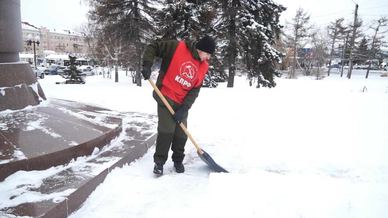 На выходных в Омске опять выпала месячная норма осадков. Коммунальные службы не справляются даже с дорогами нашего города, что уже говорить о площадях. И наши товарищи решили провести субботник на площади Ленина - знаковом для коммунистов месте. Инициатор - активист Ленинского местного отделения КПРФ Виктор Тимофеевич Курень.