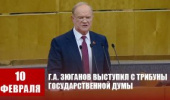 10 февраля с трибуны Государственной Думы выступил Председатель ЦК КПРФ, руководитель фракции коммунистов Г.А. Зюганов: