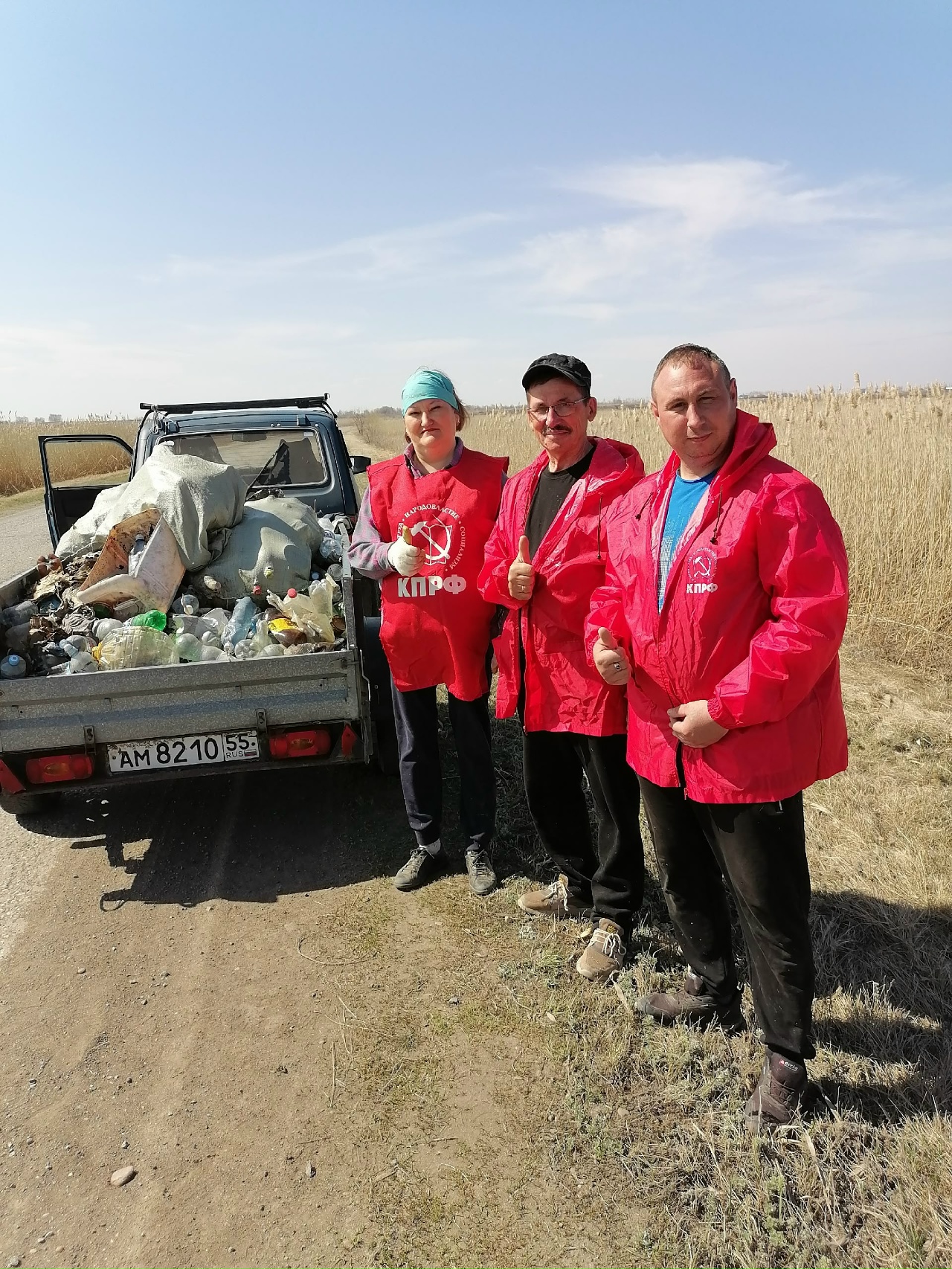 Элементарно не выбрасывать на обочины пустые бутылки, коробки, пакеты с мусором? Увы... Навести порядок вдоль трассы, ведущей к Нововаршавке, решили коммунисты и их сторонники в минувший субботник. Во главе с секретарём райкома КПРФ Анной Викторовной Гимазовой они отгрузили на местную свалку с десяток  автомобильных прицепов с тем, что было собрано на обочинах и прилегающих к дороге берёзовых колках.