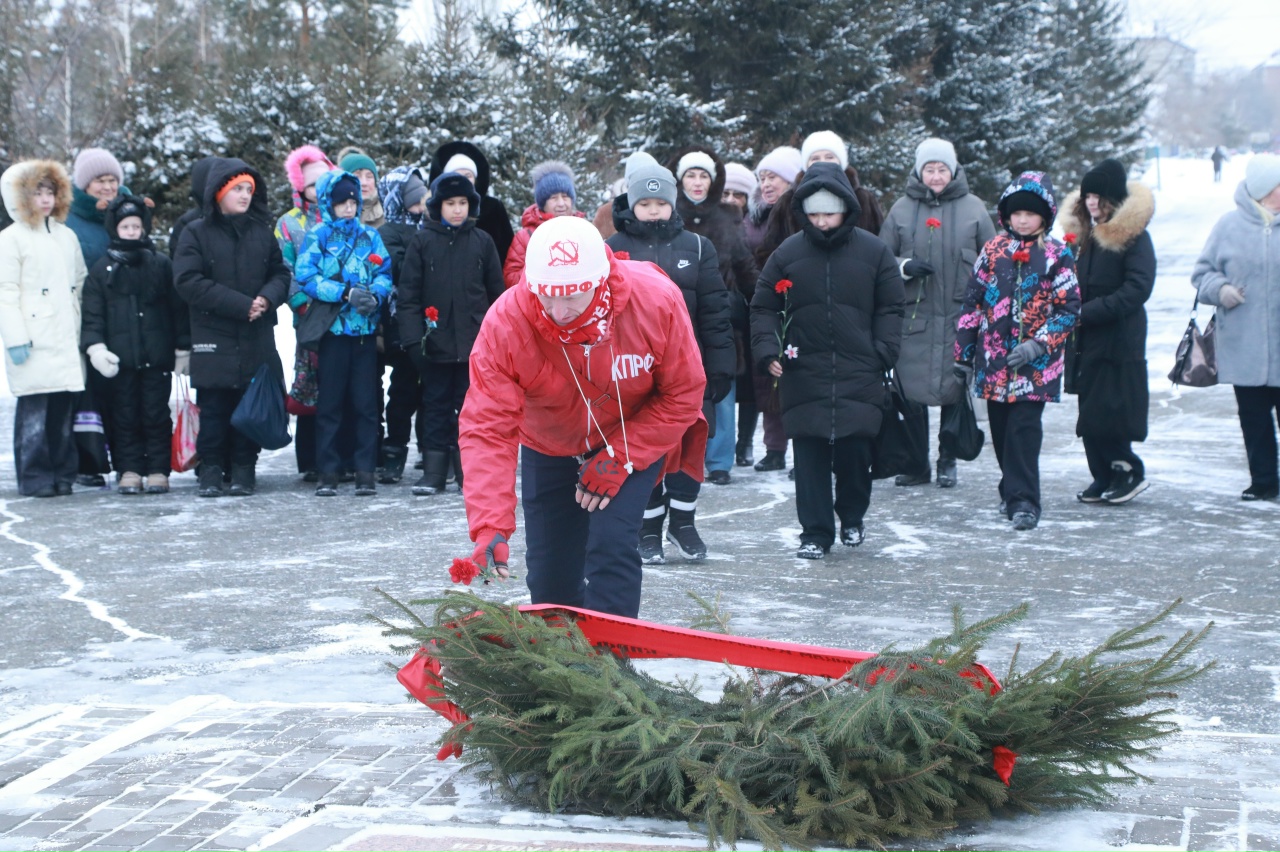 У памятника собралось около пятидесяти человек. Пришло и два класса соседней школы № 97, именно там, когда морозы были особо сильными, собирались ветераны, живущие в микрорайоне, и школьники.