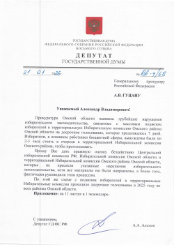 На запросы депутата в Центральную избирательную  комиссию РФ, Избирательную комиссию Омской области и территориальную Избирательную комиссию Омского района Омской области получены отписки, указанные нарушения игнорируются, хотя все материалы им были направлены, а более того, есть данные, что представители указанных структур фактически руководили этим процессом.