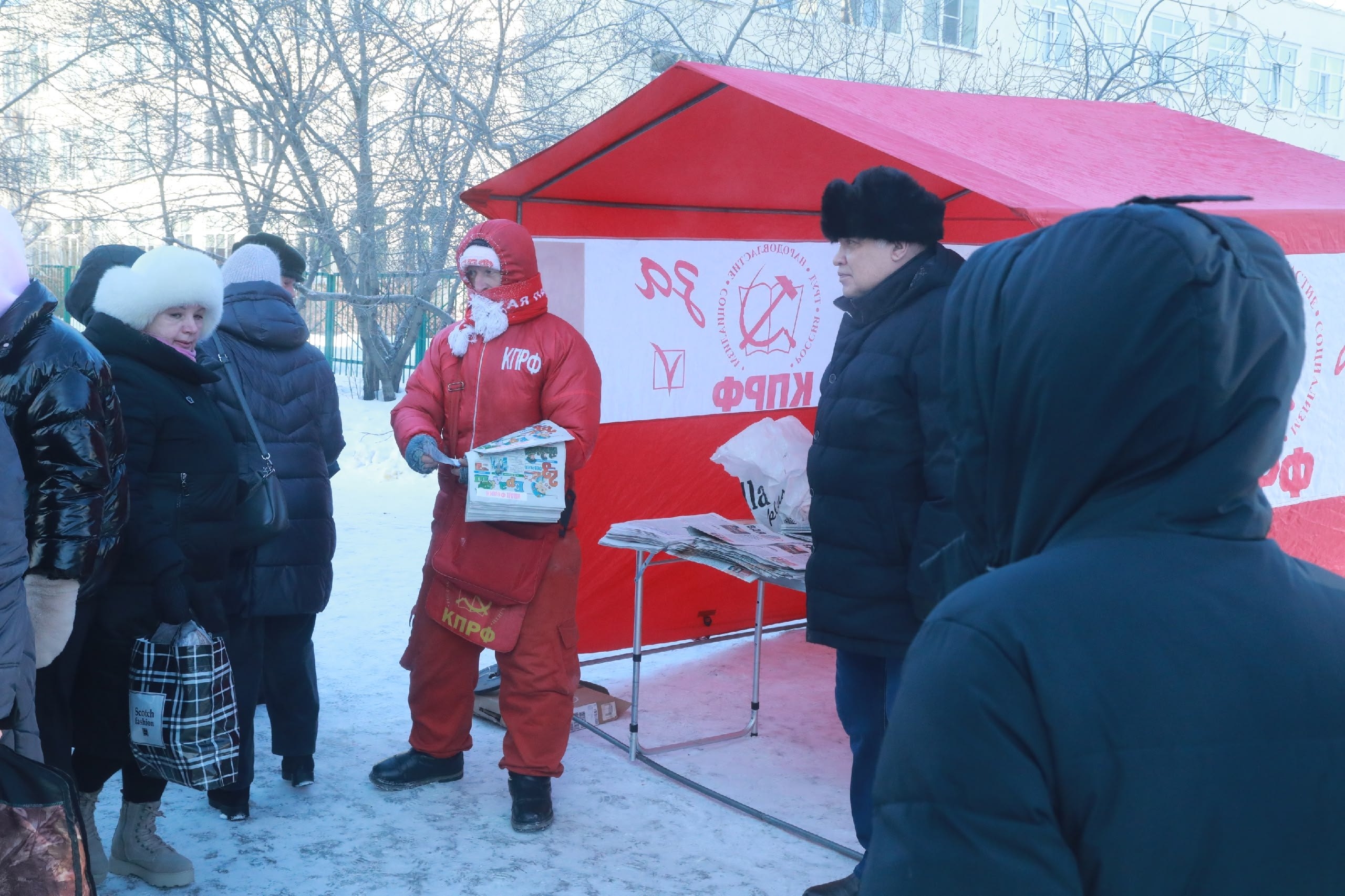С раннего утра на аллее возле «Социального» рынка установлена красная палатка. Тут любой желающий может взять бюллетень Народного референдума КПРФ и поставить свою подпись под инициативами КПРФ. Организатор этих традиционных пикетов - второй секретарь обкома КПРФ Иван Федин. В красной палатке также можно получить бесплатный номер газеты «Красный Путь» и оформить подписку на неё.