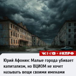 Первый заместитель Председателя ЦК КПРФ Ю. В. Афонин прокомментировал доклад Всероссийского центра изучения общественного мнения, в котором делается вывод о том, что в России могут исчезнуть сотни малых городов из-за оттока населения.