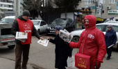 На фото: В Тюкалинске (первый секретарь МО КПРФ Юлия Тимошенко) наши товарищи обычно раздают листовки и собирают подписи под бюллетенями Народного референдума на воскресном рынке.